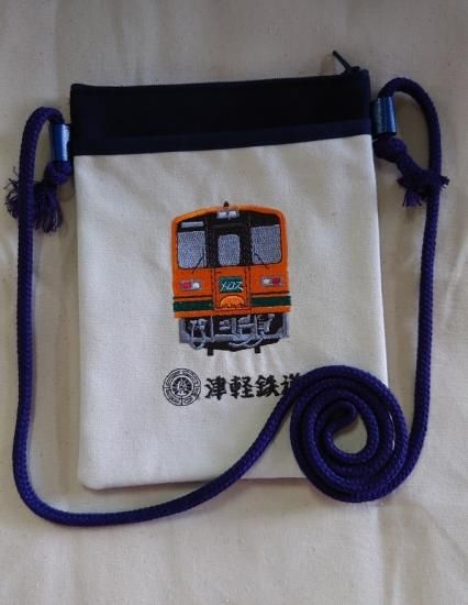 津軽鉄道の車両「走れメロス号」を帆布の生地に刺繍し、